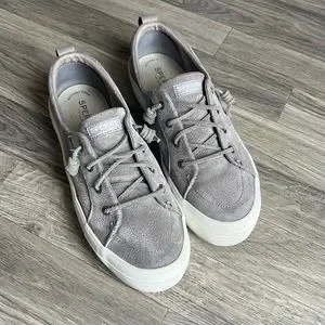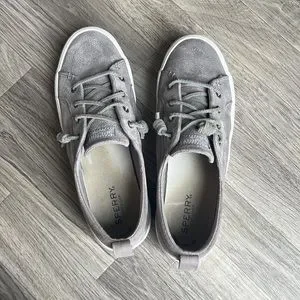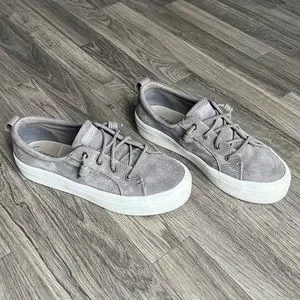 Comfy & cute, gray faux suede platform sperrys. Worn but, but not completely worn in! Super comfy and cute for all seasons.