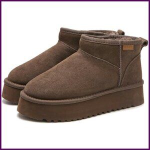Platform Suede Ankle Boots with Memory Foam, Winter Snow Boots for Women