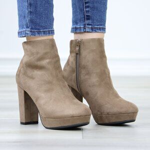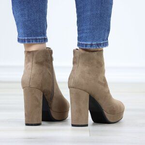 Platform Tan Suede Ankle Booties Block Heeled Boots