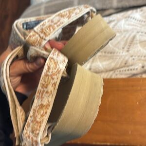 Stylish Teva sandals with a cream and brown design. Ideal for everyday wear.