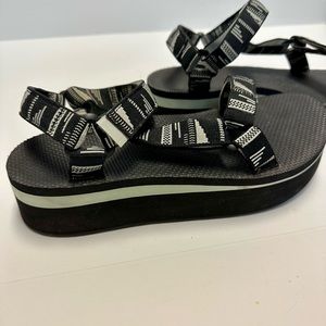 Platform Tevas. Worn a handful of times…wipe them down and they would look brand new.