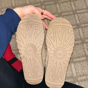 Platform ugh mini’s. They are in decent condition. They have a few marks as seen in photos but overall look good. They could probably be cleaned up to look brand new. The soles still look brand new and inside is not matted down. They don’t fit me great so I just don’t wear them as much as I hoped I would. The color is sand.