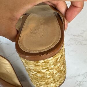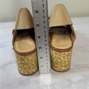Platform Wedge Nappa Leather Upper Crisscross Raffia Heel Cognac Size 8.5