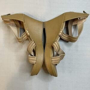 Platform Wedge Sandal Size 9 Tan Strappy Zip Up Back Shoes Sandals Open Toe