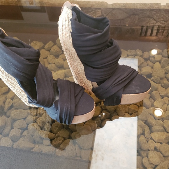 Chiffon wrap look wedges with zipper backs. Great for summer!