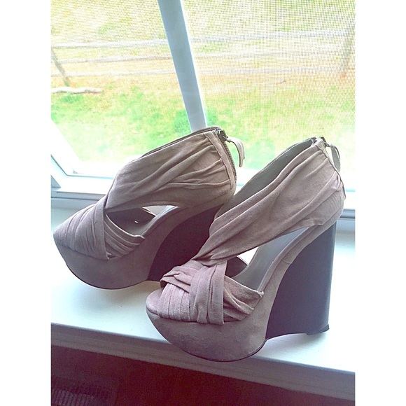 Joe's Jeans Platform Suede Wedges. These suede platform sandals feature ruched straps and an exposed back zip. 2" covered platform and 5.75" wooden wedge heel. Leather sole. Very stylish and cute wedges. Wore them 1x because my foot was a little to wide for these. I sometimes can fit a size 10 but an 11 is more comfy! Includes original box. Make your best offer ⭐️🌟⭐️