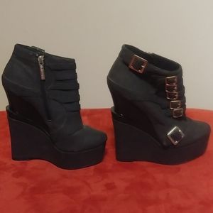 Steampunk platform black booties. These have been worn, still have alotta wear on them. About 6 inch heels