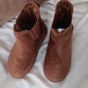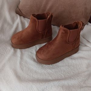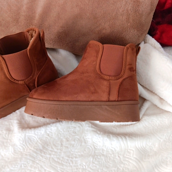 darling suede platform booties. furry inside cozy, warm and so comfy