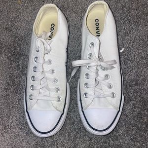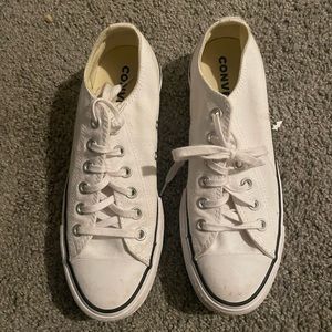 Size 8 womens platform converse. Has tiny stains but I’m sure they would come out if treated correctly. Worn a few times, just too big on me