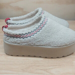 Platform embroidered braided Sherpa slip-on mules shoes ivory cream size 6 Boho