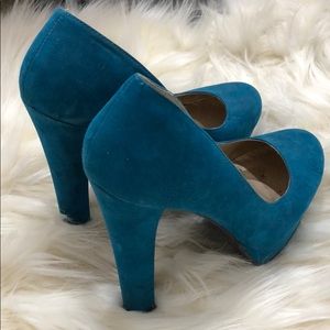 Platform heels ๐ , worn once, size 7, super comfy, greenish blue color just as you see on photos, suede material