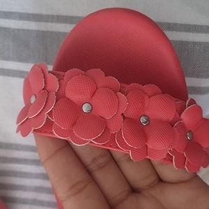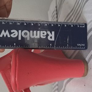 Pretty platforms! The color is kinda of a peachy, pink, coral color. Very comfortable and made for any occasion. They are about 4 inches tall.
