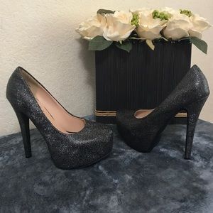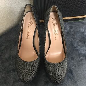 Black and silver glitter platform pumps. Size 6 US. De Blossom Collection Brand. 7", almost like new, great for wedding, clubbing, and cocktail parties. Used- one time wear. Good condition.