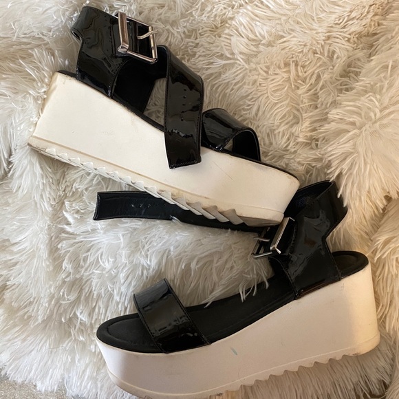 Black and white platform sandals