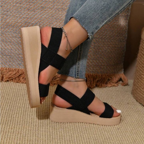 Stretch strap platform sandals New, never worn condition