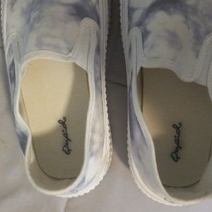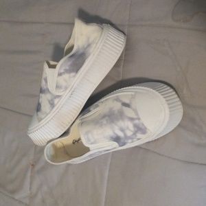 Comfortable, Adorable, Funky. In Great condition. SIze is not listed but I am an 8 and they fit just slitly bigger. so I say it is an 8.5 to 9