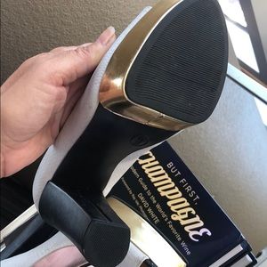 These shoes need a funky pair of textured tights! Great for fall! Worn once!! White, black and gold.