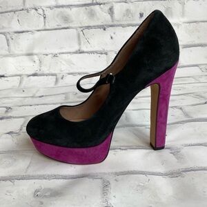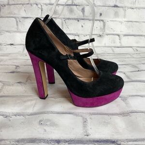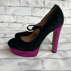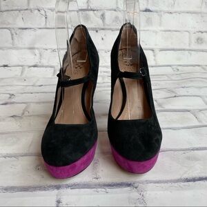 Platform suede leather black and purple Vince Camuto Mary Jane heels sz 7