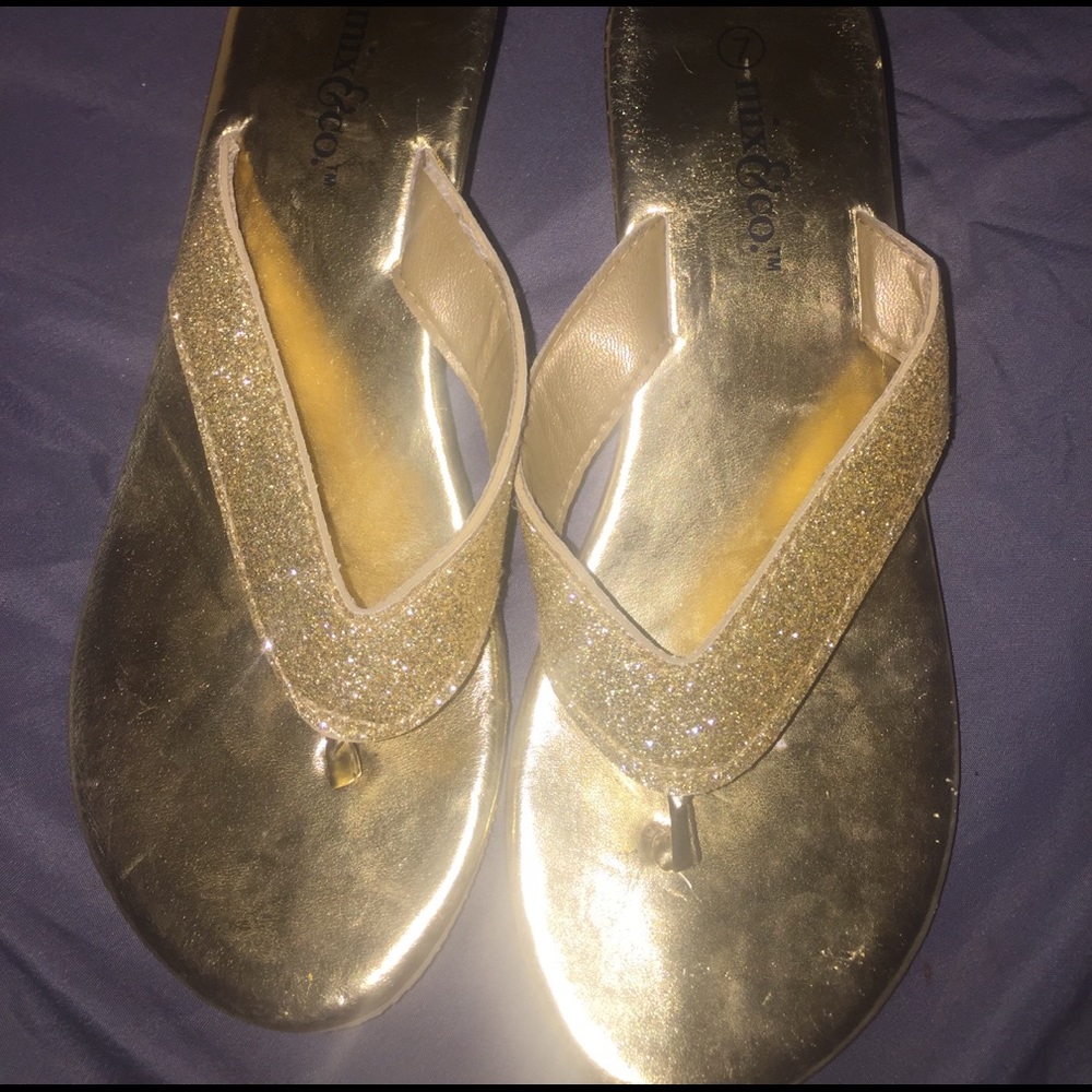 Glitter gold platforms ✨✨ these are actually pretty cute and can be worn with skirts or dresses (prom dresses etc.) SIZE 7 ✨ have never been worn (like new)