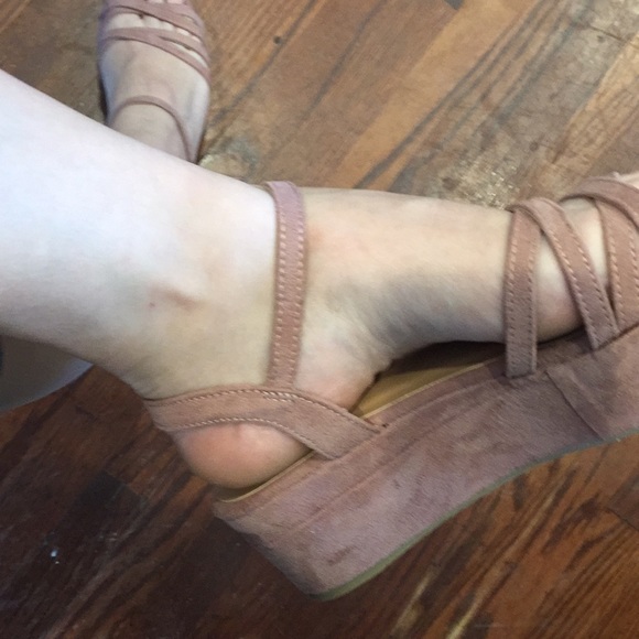 Really comfortable, never worn before, got them at Charlotte Russe! Still have sticker on the bottom. They’re a baby pink/ rose color.