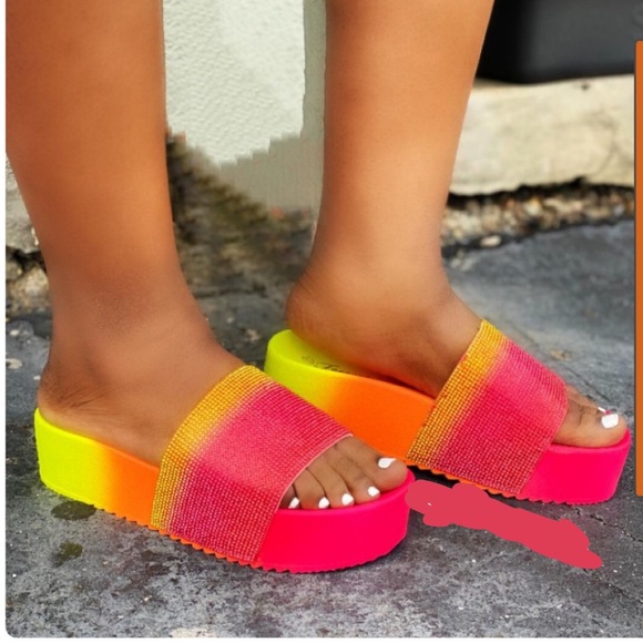 Multi yellow pink and orange platforms. Never Worn