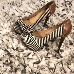 Gianni Bini denim stripe/brown platform women size 10
