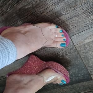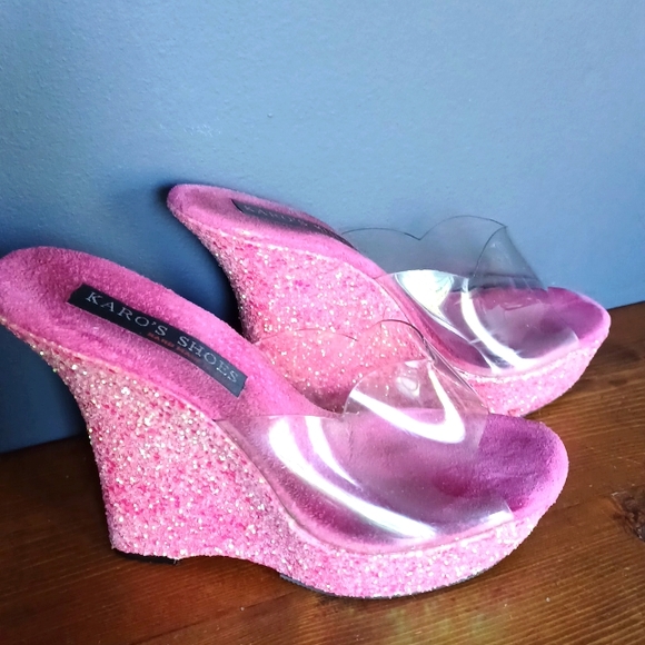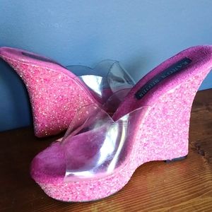 Baby doll pink glittered platforms