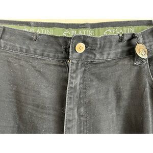 Platini Jeans size 40 W 30L Black jeans gently used. Please take notice of picture 2. they come like that. Not a rip or tear. Very nice material soft and easy to wear all day pants. Big