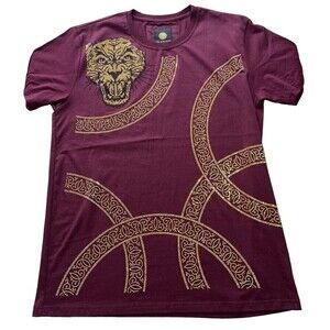 Platini Men's Crew Neck Bling Vegas Style T-Shirt Burgundy Gold Sz XL Gold Bling Cougar with Black Accents