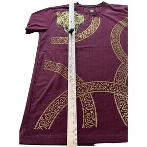 Platini Men's Crew Neck Bling Vegas Style T-Shirt Burgundy Gold Sz XL