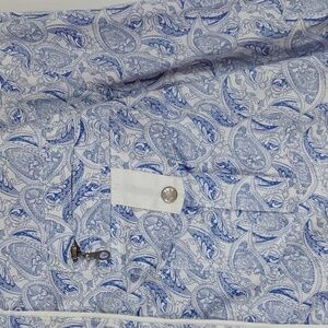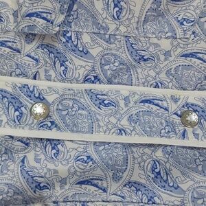 Platini- Mens Roper Western Shirt Blue & White Paisley Snap Button Down Sz.XL