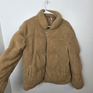 Platinum Cozy Tan Turtle Neck Outdoor Cute Puffer Sherpa Teddy Jacket Size Large