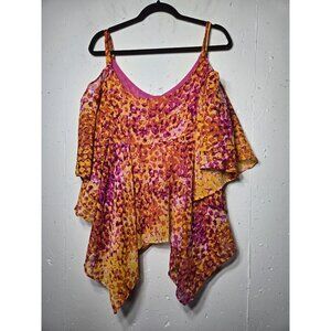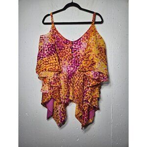 Swing top shirt bright vibrant multicolor colorful Layered ruffle sun flounce feminine light sheer lined layer summer spring button date night going out fun funky