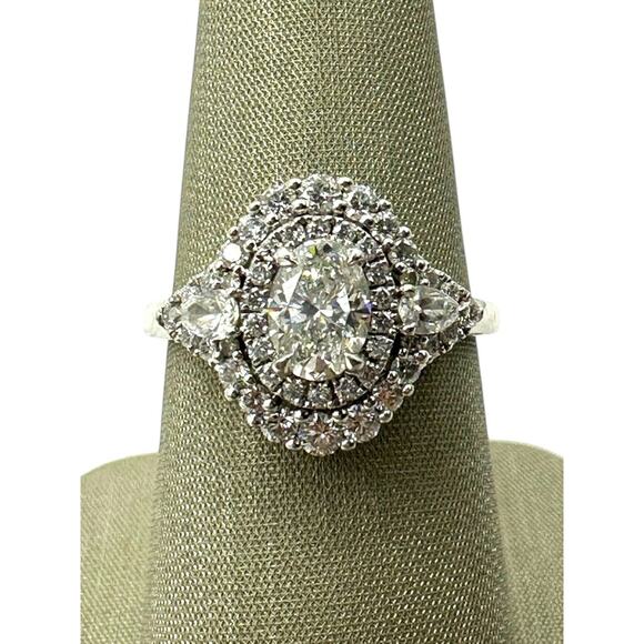 Platinum Double Halo Oval Cut 1.58cttw Diamond Ring JAGi Certified (14302)