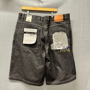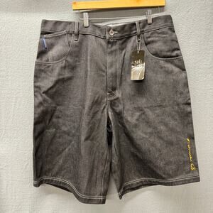 Platinum Godbody Jorts Mens 40 (41x12.5 ACTUAL) Black Denim Embroidered Y2K NEW