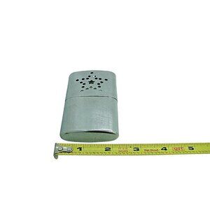 Platinum Hand Warmer Silver Tone Standard Star Design Pocket Size Reusable ~3x2"