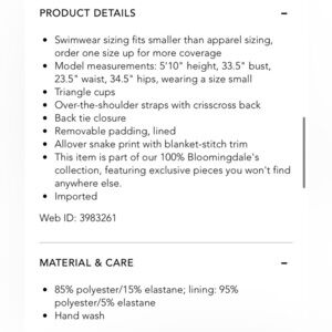 Platinum Inspired by Solange Ferrarini Cobra Crochet Trim Swim Bikini Top Size D