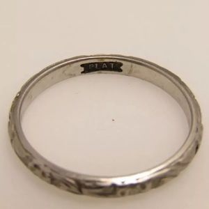 Platinum Marked and Tested Thin simple Etched Jewelry wedding Band Ring.