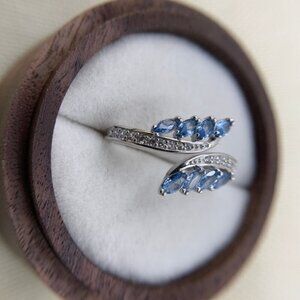 Platinum Plated S925 Sterling Silver Blue Willow Ring