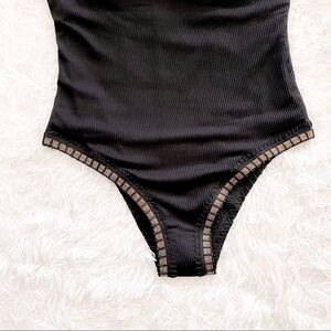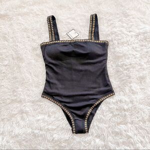 Platinum Inspired By Solange Ferrarini Square Neck Black One Piece Swimsuit with Gold Trim SZ S BNWT