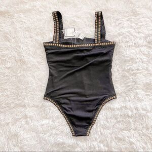 Platinum Inspired By Solange Ferrarini Square Neck Black One Piece Swimsuit with Gold Trim SZ S BNWT