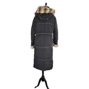 Stay warm and stylish in this Platinum Utex faux fur trim down parka, designed with both function and fashion in mind. This dramatic, longline coat channels Penny Lane and Mob Wife aesthetics with its luxurious faux fur hood, collar, and cuffs, creating a bold, glamorous winter look.