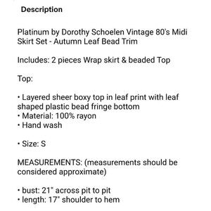 Platinum by Dorothy Schoelen Vintage 80's Midi Skirt Set Autumn Leaf Bead Trim