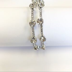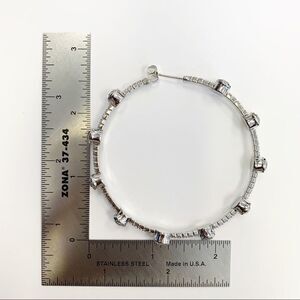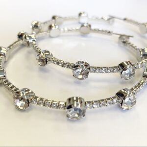 Platinum Jeweled Flexi-Hoop Earrings - Jewel encrusted hoop earrings with larger jewel accents. These hoops are super flexible, making them easy to put on. These earrings have a friction back closure soldered to one end of the earring opposite the post and also a set of rubber backs as backup. *This item has discounted shipping. *Price is Firm.