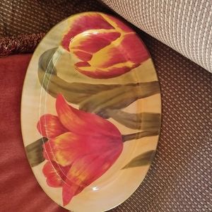 Hand painted platter. Poppies on a creamy background. measurements are 15 long by 11 width. pictures don't do this justice.