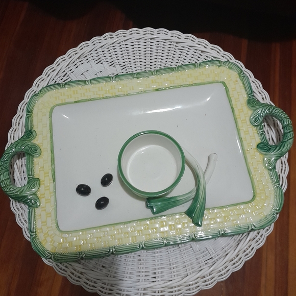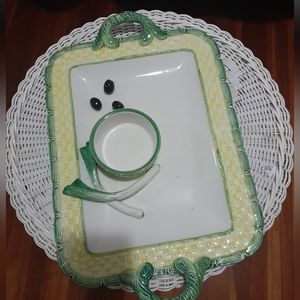 Italian ceramic platter hand made with grape and green seasoning made in Italy width 11 inches and width 15 inches in good condition with age
