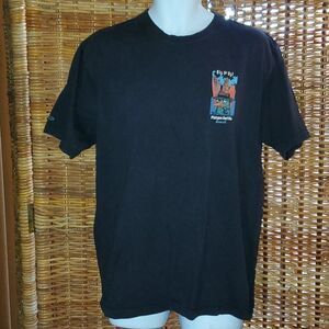 This Crazy Shirt has the best graphic that is the same on front and back. It has Inspector Perry the Platypus, surfboards, and the words "Rip It Up, Platypus Surf Co."