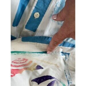 Play Alegre Painted Blouse Women XL Coastal Boats Button Up White Fish