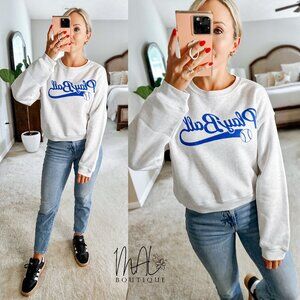 This Play Ball Midi Graphic Sweatshirt is so remarkably soft and features a crewneck, ribbed cuffs and waistbands, mid-length, and spun from plush sponge fleece fabric. The perfect layering sweatshirt for those chilly morning and nights!