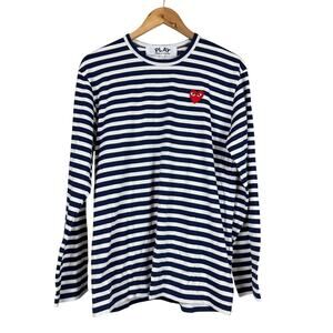 Play Comme Des Garçons NWT Long Sleeve Striped Double Heart Shirt Size Large